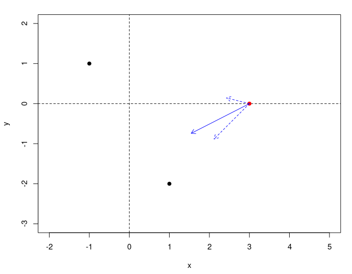 omega = 1 # (s^-1) tanto per metterci qualcosa T = 2*pi/omega curve( cos(omega*t), -T/2, 1.5*T, xname='t', lwd=2, ylab='sinusoidi') grid() curve( cos(omega*t + pi/10), xname='t', lwd=2, col='red', add=TRUE) curve( cos(omega*t - pi/10), xname='t', lwd=2, col='green', add=TRUE)