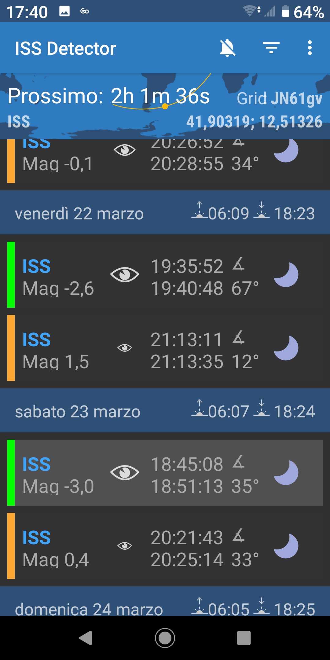 (ad esempio ISS Finder e ISS hd live). A voi la scelta, facendo le dovute prove in anticipo.