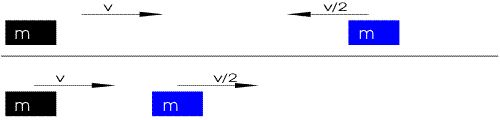 Masse uguali, con i due casi di |v2|= |v1|/2