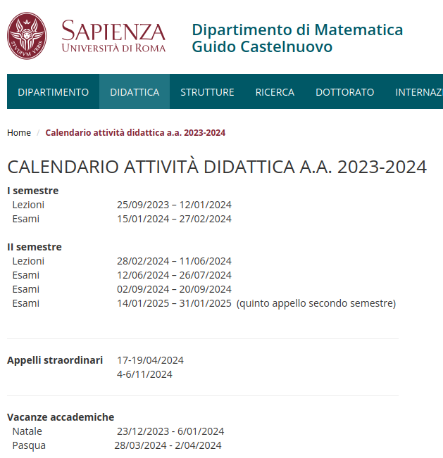 [Esami (date scritti): 17 giugno e 4 luglio; 9 e 18 settembre; ...]