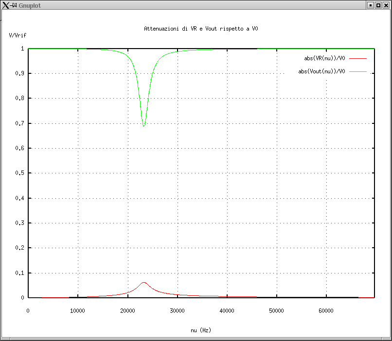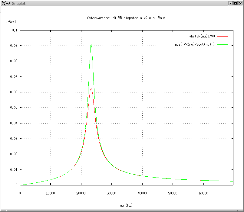 2. Attenuazione di VR rispetto a V0 del generatore confrontata con quella rispetto all'uscita del generatore (Vout). |