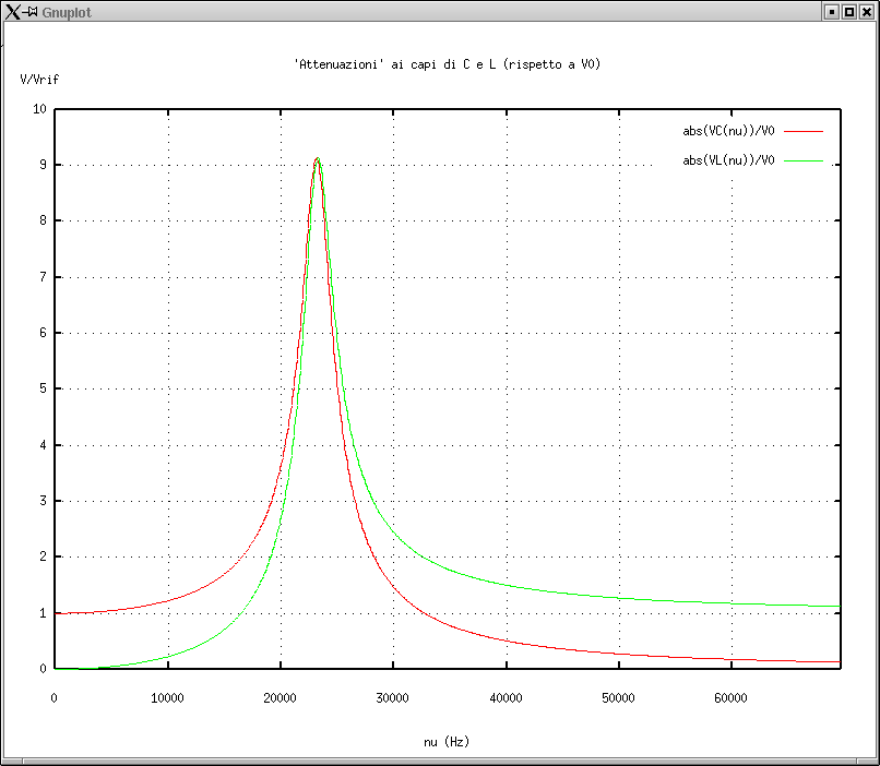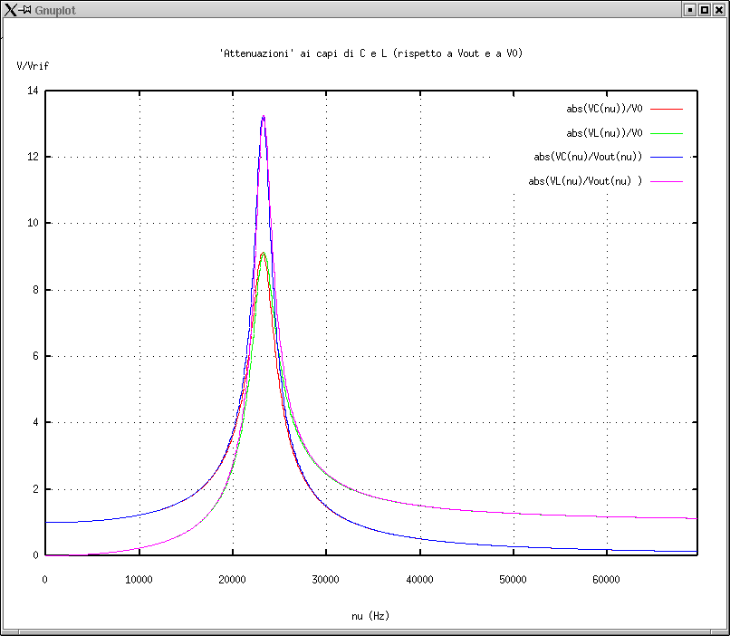 4. Attenuazione di VC e VL rispetto a V0 del generatore confrontata con quella rispetto all'uscita del generatore (Vout). |