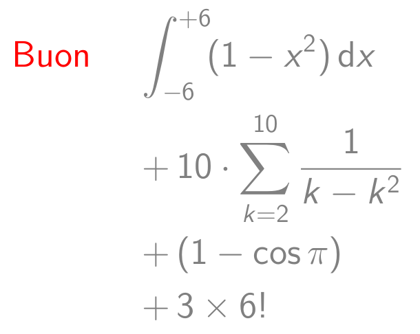 - cat( sprintf("Buon %d!\n", integrate(function(x) 1-x^2,-6,6)$value + 10*sum(1/(2:10-(2:10)^2))+ (1-cos(pi)) + 3*factorial(6) ) )